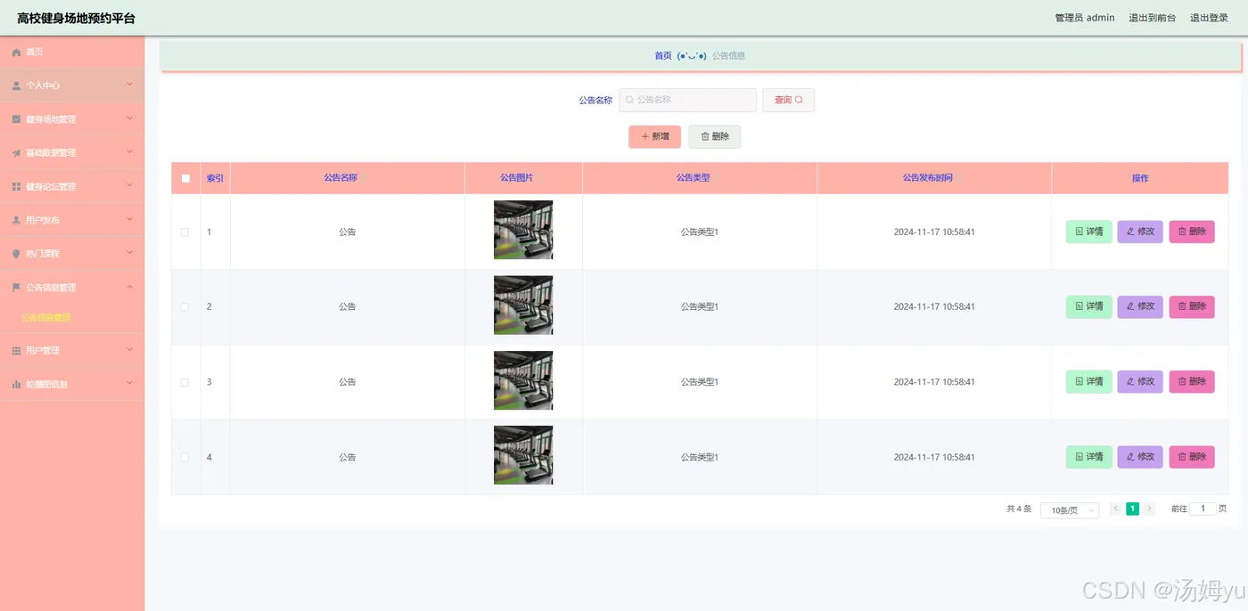 传统管理方式需要大量人力进行场地登记、统计等工作,不仅效率低下,还容易出现人为错误。而SpringBoot预约系统实现了自动化管理,从预约申请的提交、审核到最终确认,都能在系统中快速完成,减少了人工干预,降低了管理成本。同时,系统还能对预约数据进行长期存储和分析,为管理人员提供决策依据,有助于制定更加科学合理的管理策略,提升高校健身场地管理的整体水平和质量。