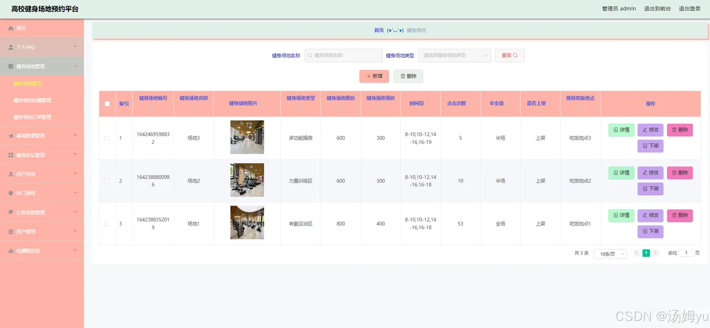 在高校教育蓬勃发展的当下,学生对于健康和身体素质的重视程度日益提升,健身活动逐渐成为高校学生课余生活的重要组成部分。高校内配备的各类健身场地,如篮球场、羽毛球场、健身房等,是学生开展健身活动的关键场所。然而,当前高校健身场地管理面临着诸多问题,严重影响了学生的使用体验和健身积极性。传统的高校健身场地预约方式多依赖人工登记或现场排队,效率极为低下。在健身高峰期,学生往往需要花费大量时间在场地外排队等候,不仅浪费了宝贵的学习和休息时间,还容易引发学生之间的矛盾和冲突。而且,人工管理难以实时掌握场地的使用情况,导致场地资源分配不均衡,部分热门场地人满为患,而一些冷门场地却闲置浪费,无法充分发挥场地的使用价值。随着信息技术的飞速发展,数字化、智能化的管理系统在各个领域得到了广泛应用。利用先进的计算机技术和网络平台,开发一套基于SpringBoot框架的高校健身场地预约系统,能够有效解决传统管理方式存在的弊端。SpringBoot框架具有开发效率高、易于维护和扩展等优点,能够快速搭建稳定可靠的后台服务。通过该系统,学生可以随时随地在网上查询场地使用情况、进行预约操作,管理人员也能实时监控场地动态、合理调配资源,从而提高场地管理的效率和科学性,为学生提供更加便捷、高效的健身服务,促进高校体育事业的健康发展。
