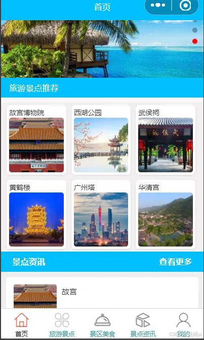 在互联网技术飞速发展的当下,全球范围内的旅游业正经历着前所未有的数字化变革。随着移动互联网的普及,智能手机成为人们获取信息的主要工具。庞大的手机网民群体为旅游信息化发展提供了广阔的市场空间。随着社会经济水平的不断提高,越来越多的人开始选择在空闲时间里去旅游放松、旅游社交等。对于城市来说,旅游作为一种休闲娱乐活动已经成为城市经济发展中不可或缺的重要组成部分。但在旅游过程中容易发生不了解相关城市的旅游信息、旅游目标不明确等而导致一些问题[6]。一方面,旅游信息的海量性和分散性给游客带来了困扰。游客在规划行程时,往往需要在多个平台上搜索信息,耗费大量的时间和精力。另一方面,信息的准确性和时效性也难以保证。一些旅游信息更新不及时,导致游客获取到的信息与实际情况不符,影响了旅游体验。例如,游客可能会因为不确定景点开放时间无法顺利参观而耽误行程。此外,旅游市场的不规范也给游客带来了风险,如虚假宣传、价格欺诈等问题时有发生。因此,开发一款功能强大、便捷实用的旅游景点推荐微信小程序显得尤为重要。该小程序可以方便管理人员对旅游景点推荐微信小程序的管理,提高信息管理工作效率及查询效率,用户可以在手机上通过微信小程序来查看景点,更加的方便,有利于提升用户的旅游体验,推动旅游业的持续健康发展。