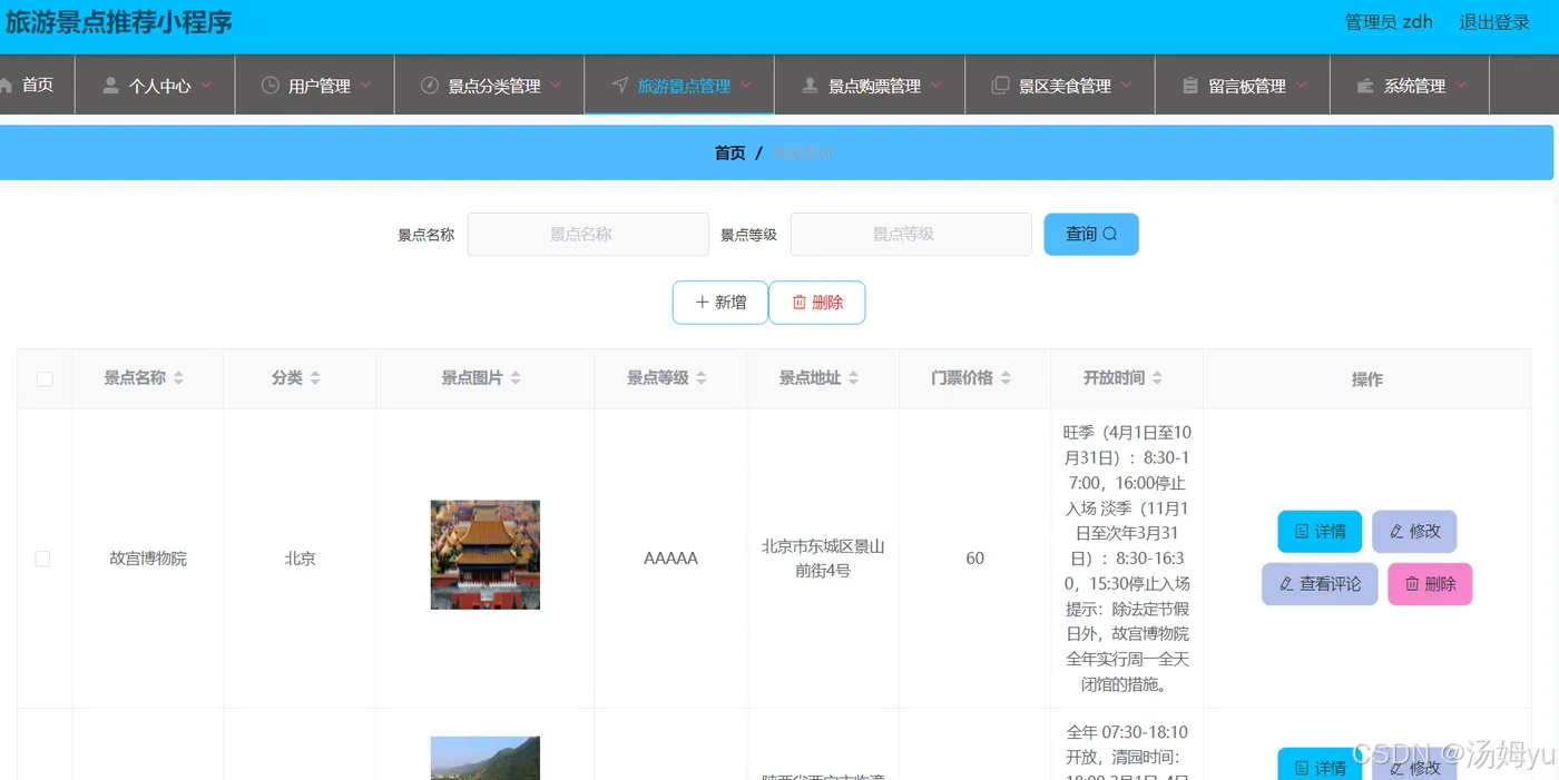 随着互联网技术的快速发展,网络时代的到来,网络信息也将会改变当今社会。各行各业在日常企业经营管理等方面也在慢慢的向规范化和网络化趋势汇合。微信小程序旅游景点推荐的信息化程度体现在将互联网与信息技术应用于经营与管理,以现代化工具代替传统手工作业。无疑,使用网络信息化管理使信息管理更先进、更高效、更科学,信息交流更迅速。从提升游客体验的角度来看,该系统具有重要的意义。它能够为游客提供丰富、准确的景点信息,包括景点特色,周边配套设施等,帮助游客更好地了解景点,选择符合自己兴趣和需求的旅游目的地。例如,对于想要去北京的游客,可以点击北京分类的景点,并提供详细的景点背景介绍和景点信息;此外,系统还提供在线购票功能,游客可以提前预订门票,避免在景区门口排队等待,节省时间和精力。同时,游客可以在小程序上写上自己的旅游经验和心得,和对系统的想法和建议,为管理员提供参考,增强管理员和用户之间的互动和交流。从推动旅游业发展的角度来看,该系统也具有积极的作用。通过整合旅游信息,提高信息的传播效率,能够吸引更多的游客前往旅游目的地,促进旅游消费的增长。