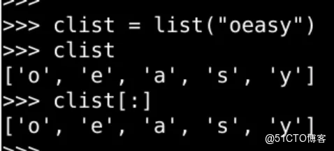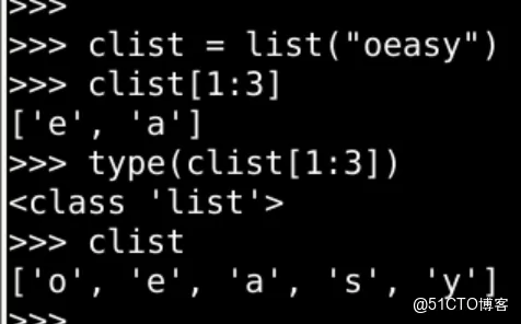 clist = list("oeasy") clist[1:3] type(clist[1:3]) clist
