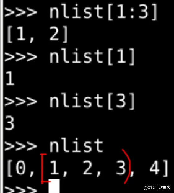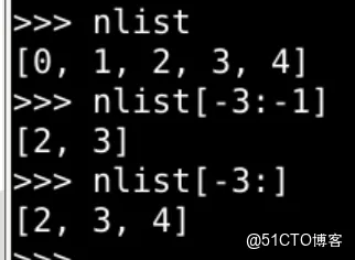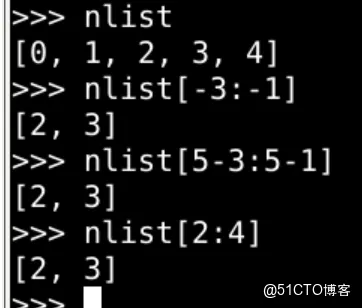 nlist nlist[-3:-1] len(nlist) nlist[5-3:5-1] nlist[2:4]