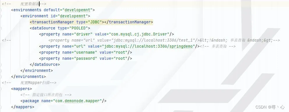 在使用注解前,请在核心配置文件中配置好数据源,以及Mapper的扫描