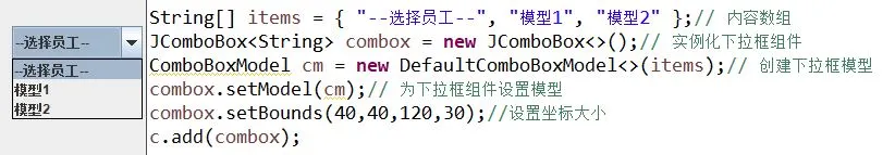 接着,使用下拉框组件调用setModel方法,将下拉框数据模型给添上。
