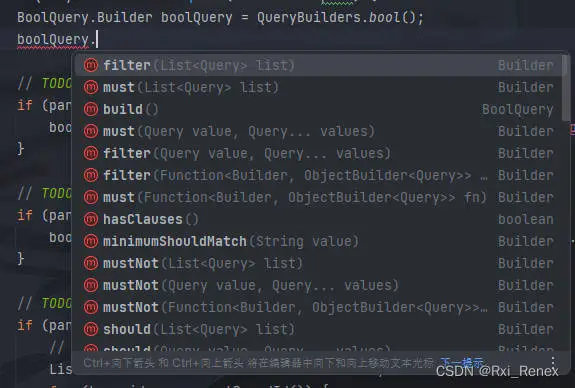 // 这些都是构造器 BoolQuery.Builder boolQuery = QueryBuilders.bool(); // 这是总构造器装载,相当于最开始的 {} new NativeQueryBuilder() .withQuery(a->a.bool(boolQuery.build()))