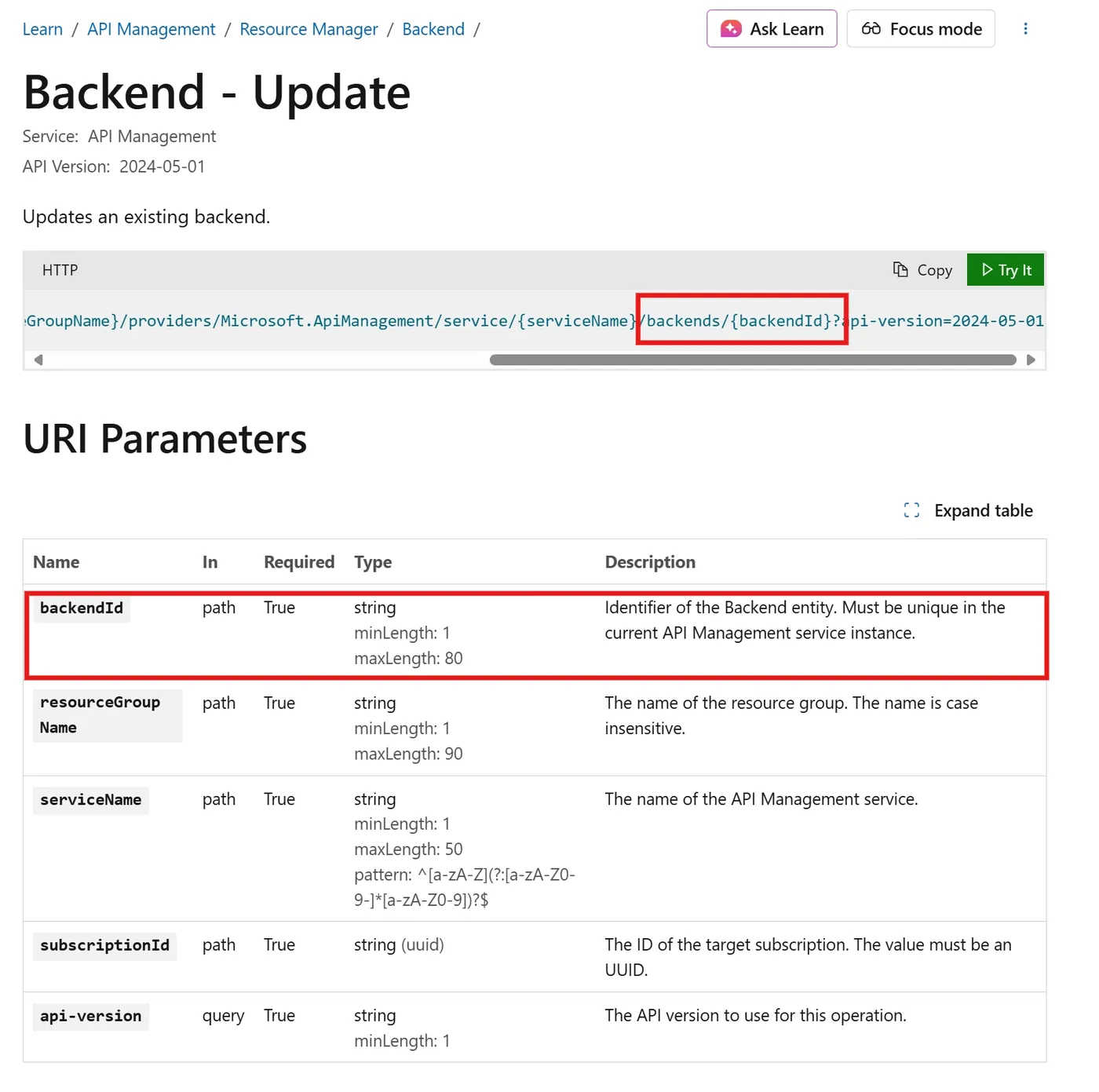 Backend - Update : https://learn.microsoft.com/en-us/rest/api/apimanagement/backend/update?view=rest-apimanagement-2024-05-01&tabs=HTTP