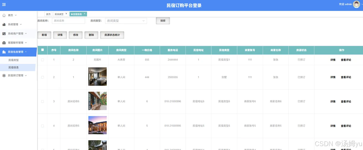 在旅游市场蓬勃发展的大背景下,民宿作为一种特色住宿形式,凭借其独特的文化氛围、个性化的服务和亲民的价格,受到越来越多游客的青睐。近年来,国内民宿数量呈爆发式增长,行业规模不断扩大。然而,随着民宿市场的繁荣,传统的管理方式逐渐暴露出诸多弊端。在预定环节,依靠电话、邮件等人工方式进行沟通与预订,不仅效率低下,还容易出现信息记录错误、订单处理不及时等问题,导致客户体验不佳。在房源管理方面,手动统计房源状态、价格调整等工作繁琐且易出错,难以实现实时更新和精准管理。同时,面对大量的客户信息和反馈,缺乏有效的数据分析手段,无法深入了解客户需求和市场趋势,进而影响民宿的经营决策和竞争力提升。此外,互联网技术的飞速发展和普及,为民宿行业的数字化转型提供了有力支撑。游客越来越倾向于通过在线平台进行民宿预订,对便捷、高效、个性化的服务需求日益增长。因此,开发一套功能完善、操作便捷的民宿预定管理系统,实现民宿业务的信息化、智能化管理,已成为提升民宿运营效率、增强客户满意度、推动民宿行业可持续发展的迫切需求。