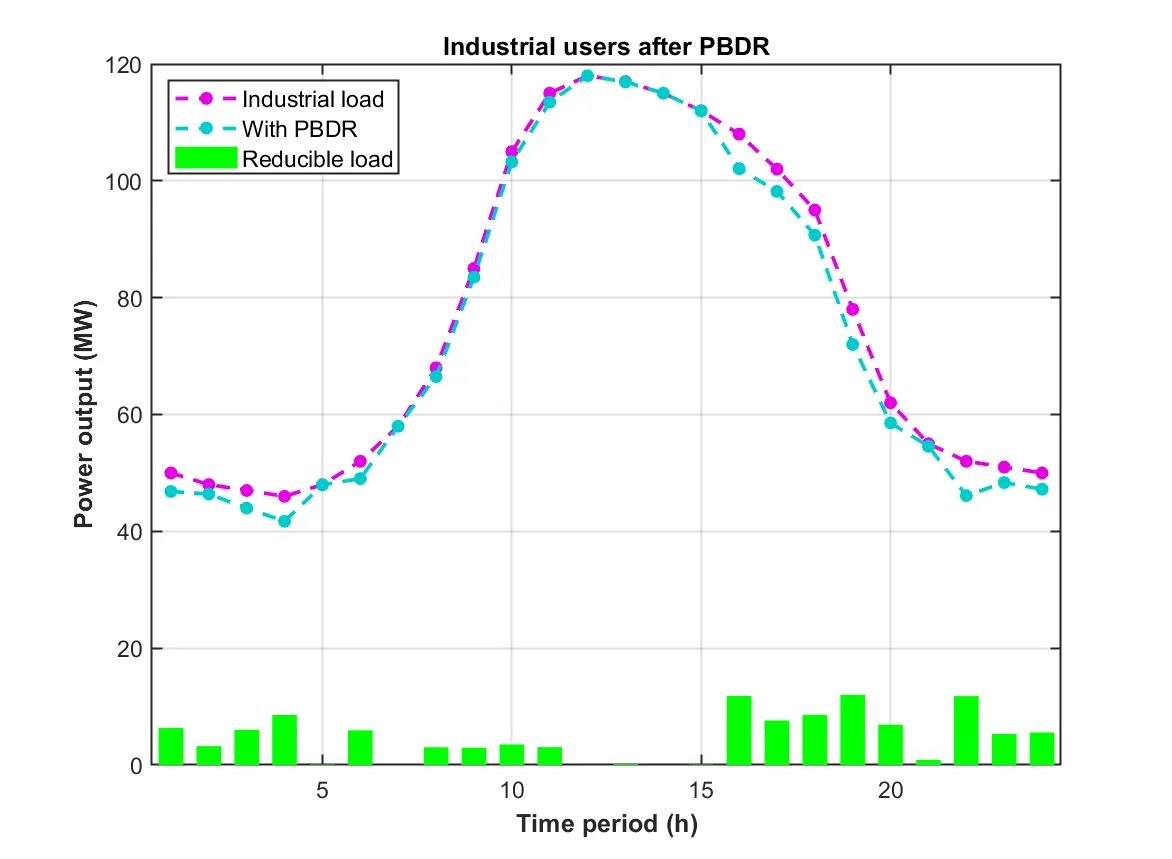 3. VPP运营商对商业与居民用户采用阶梯型激励DR(SIBDR)策略,对工业用户采用激励型DR(IBDR)与价格型DR(PBDR)策略,不仅使VPP在电力市场(EM)中的互动成本降低27.2%,还令其总成本下降3.8%。此外,依据不同用户负荷特性定制DR策略,可提升各方参与积极性。