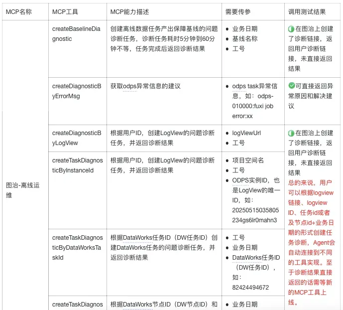 在实际场景中,我们的任务未挂载到基线上,任务又受上游影响(我们非上游任务负责人)延迟产出而没及时被通知时,需要我们自行进入到运维中心,根据任务血缘不断往上找到问题所在。即使是让Agent来帮我们排查问题,也需要能够获取到任务实例状态,因此我们借助图治的诊断能力来帮我们实现这部分功能,图治近期上线了离线运维的MCP能力,正好支持我们在AI Studio上调用。
