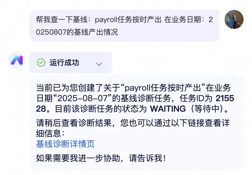借助这部分MCP能力实际已经可以直接帮助我们解决掉现有的一些问题:单一任务诊断和基线诊断,而针对单一任务未挂载到基线上的,我们可以通过任务上游血缘辅助分析。