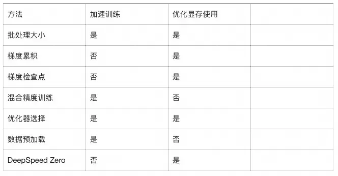 本节主要分析如何在大模型训练过程中,优化训练性能,加快训练速度(即提高数据吞吐量)以及优化显存利用率。在huggingface、nvidia等社区里有提到很多在GPU设备上进行的训练优化方法,如下为一些较为通用的方法: