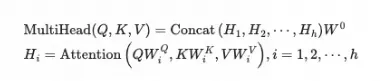 多头注意力机制是进行了多个self-attention的结合,每个head都会学到不同表示空间中的特征。从而较好的表征序列中的关联关系。 运算为:
