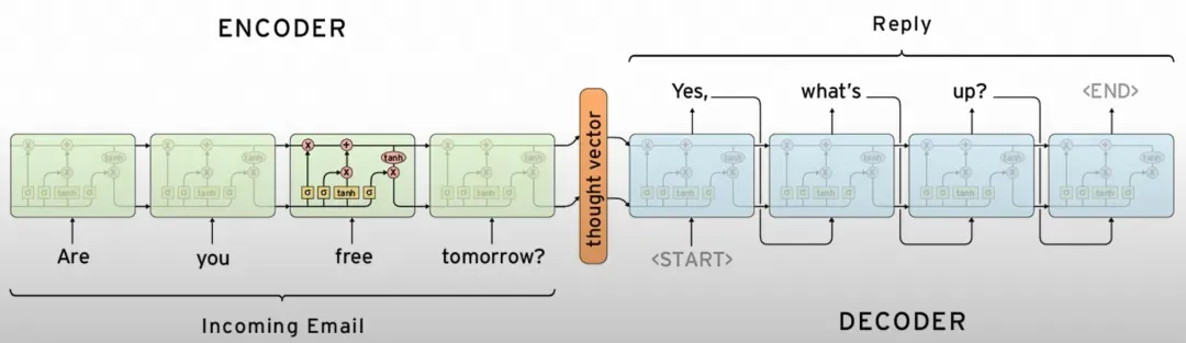 - Encoder-Decoder结构模型包括编码器和解码器,Encoder将输入序列进行处理,得到向量(thought vector),向量输入到Decoder 转化成 想要的输出;