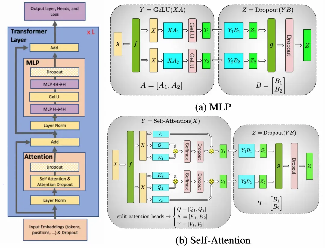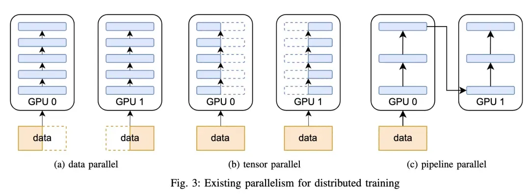 大规模并行训练的一个关键因素是并行训练策略的选择。在[20、21] 中介绍了Megatron-LM常见的大规模训练策略。