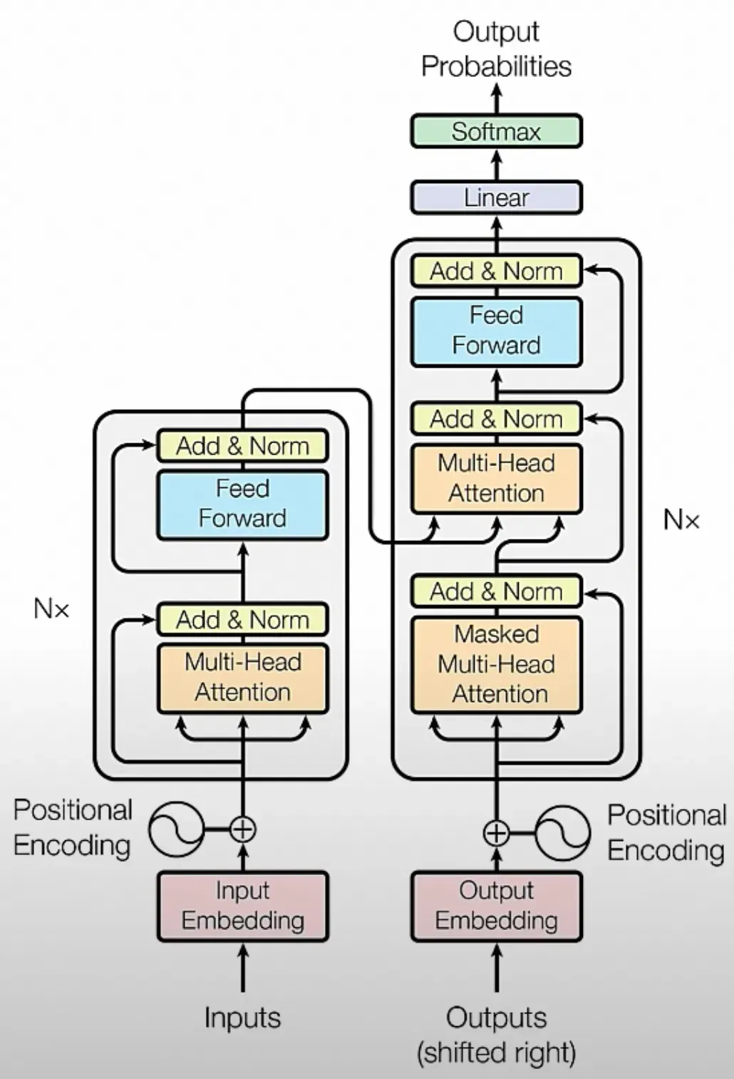 Transformer架构的左侧为Encoder结构,右侧为Decoder结构,如下: