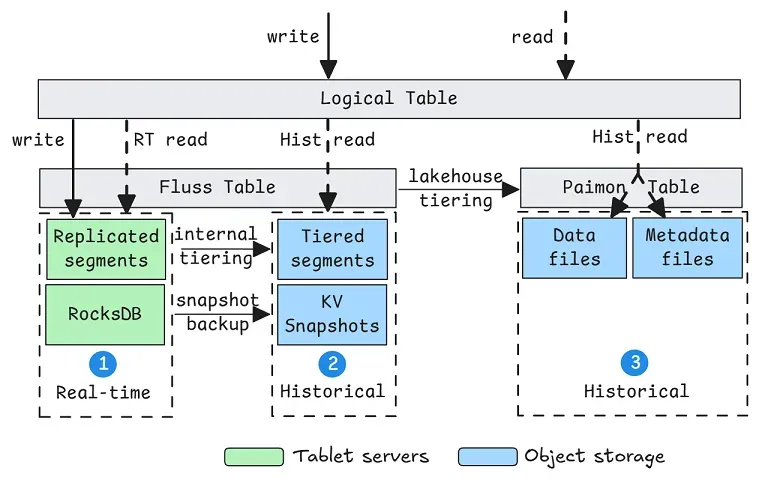 随着低延迟表存储引擎 Fluss 的加入,我们现在面临着将实时数据与历史数据拼接起来的问题。正如我在《Conceptual Model for Storage Unification》[4] 中所描述的,这主要涉及两个关键点: