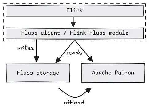 Apache Fluss 是一个表存储服务,最初设计为替代 Paimon 或主要部署在 Paimon 前端,提供更低延迟的表存储和变更日志功能。在后台,Fluss 会将数据卸载到 Paimon;它也可以完全依赖自身的内部分层,无需向 Paimon 卸载任何数据。两种分层机制并存有时可能会造成混淆,我们将在后续详细探讨。