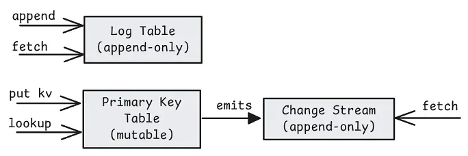 - 仅追加表(Append-only Tables),称为日志表(Log Tables)。