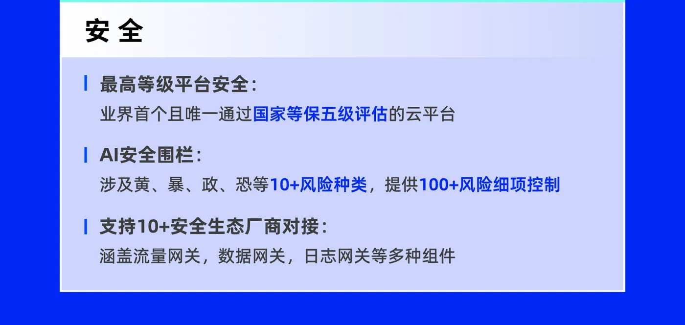 - 主权云:一朵可运营的“专有公共云”,支持100%本地化管控与存储,满足各国合规要求,支持客户自主训练主权大模型;