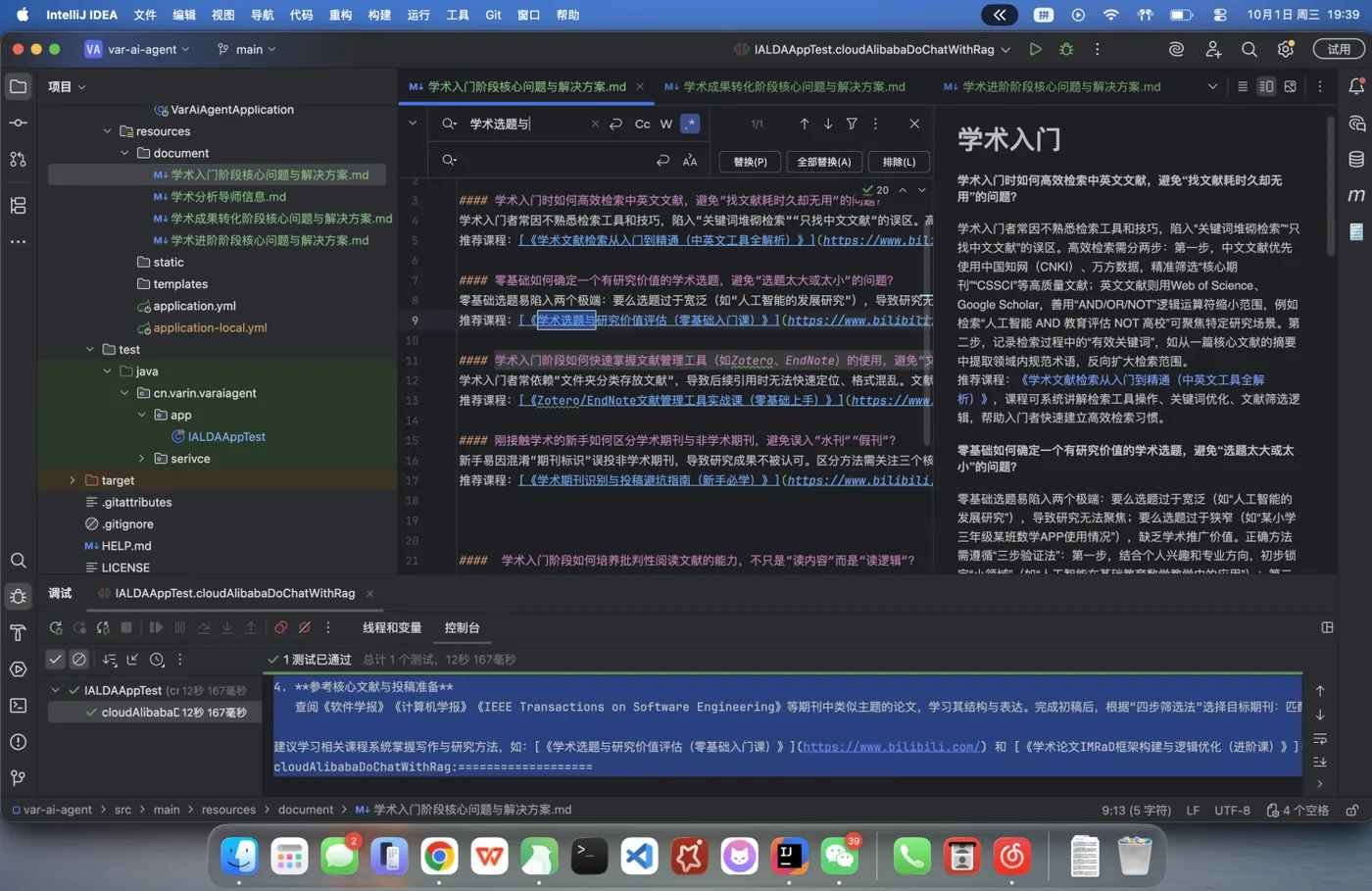 @Test void cloudAlibabaDoChatWithRag() { String uuid= UUID.randomUUID().toString(); String message = ialdaApp.cloudAlibabaDoChatWithRag( "我是软件工程专业,怎么开始写论文",uuid ); System.out.println(message); }
