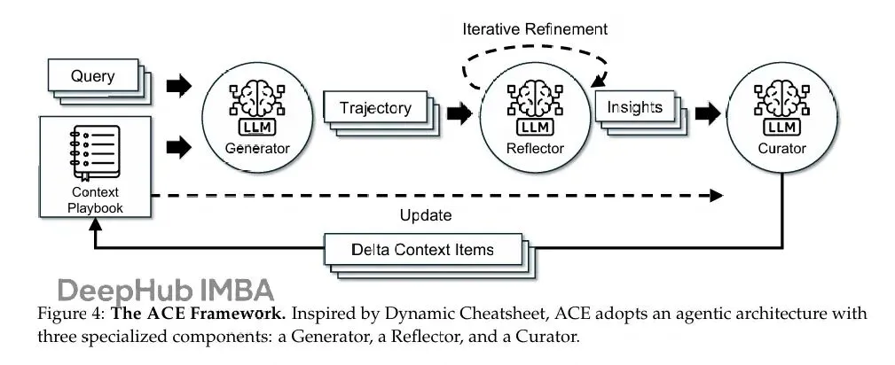 ACE不完全重新生成上下文,而是增量产生紧凑的delta contexts——Reflector提炼、Curator整合的候选bullet小集合。这避免了完全重写的计算成本和延迟,同时确保过去知识被保留、新信息稳步追加。随着上下文增长,这个方法提供长周期或领域密集应用需要的可扩展性。