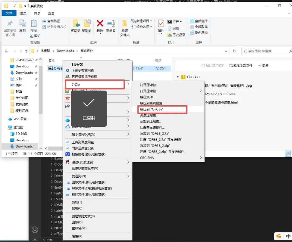 1.点击上面下载安装包,下载后解压(不要在网盘里解压),一般我分享的都是7-ZIP压缩包,所以要用他来解压。