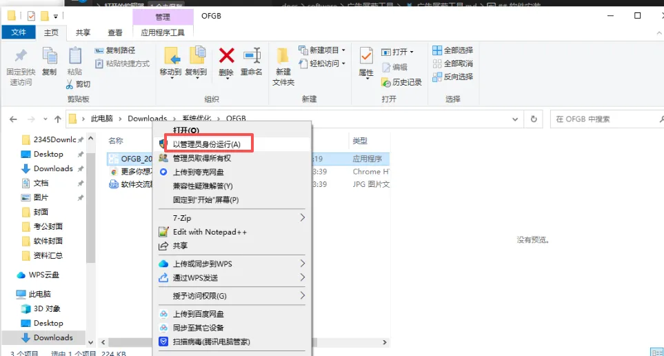 3.找到以"exe"的文件,右键以管理员身份运行,如图