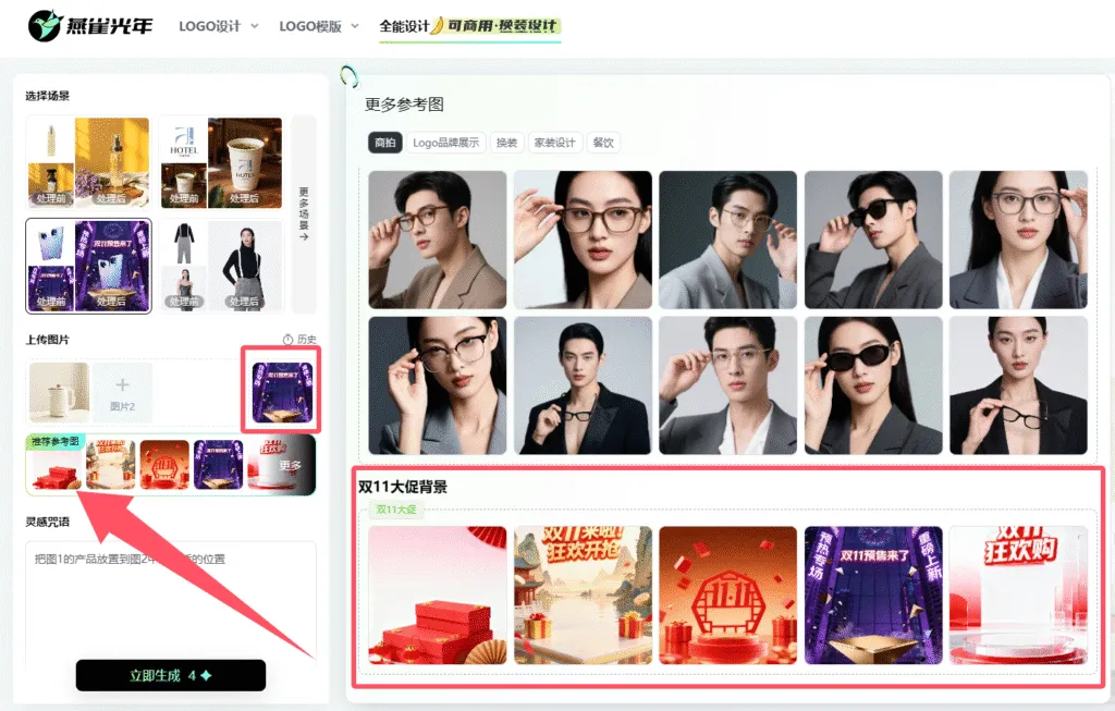 AI生成电商主图的步骤 以燕雀光年AI全能设计为例,介绍如何用AI生成电商主图: