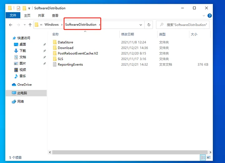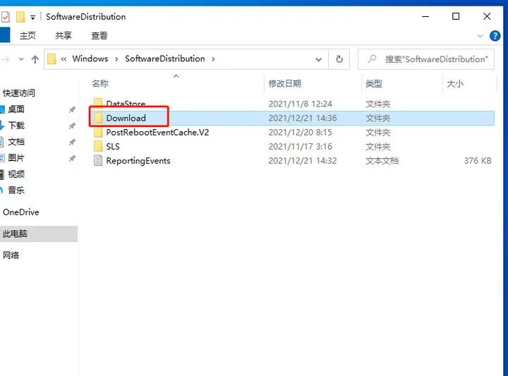 4、按照以下路径:C:\Windows\SoftwareDistribution 打开文件夹;