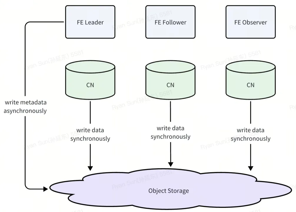 在启用集群自动快照功能后,系统会按照设定周期(默认每 10 分钟)生成一份完整快照,并将 FE 的元数据 image 文件写入指定的对象存储路径。因为原始数据文件本身就已经保存在对象存储中,因此数据层面不会发生额外的数据搬迁,系统默认保留最近一次快照及其所依赖的数据版本。