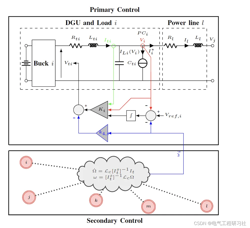 在孤岛 DCmG 中,电压稳定性至关重要,因为没有它,电压可能会突破临界水平并损坏连接的负载 [3]。因此,通常采用初级电压控制层来跟踪耦合点 (PC) 处的所需电压参考,从而将 DGU 连接到 DCmG。为此,文献中提出了几种方法,例如基于下垂控制[2]、[4]和即插即用控制[5]、[6]。除了电压稳定性,另一个理想的目标是确保电流共享,即 DGU 必须根据其额定电流共享 mG 负载。事实上,在没有它的情况下,未调节的电流可能会使发电机过载并最终导致 mG 故障。