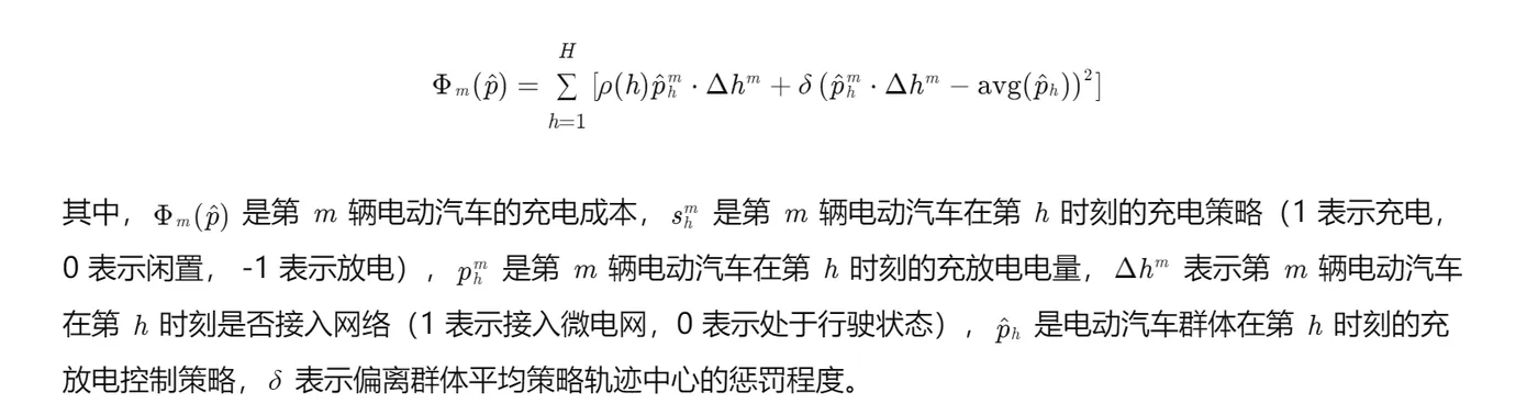 每个电动汽车需要设定自身的决策策略,包括选择充电时间、充电地点、充放电电量等。决策策略的设定需要考虑自身的充电需求、电池状态、行驶计划等因素,同时还要考虑微电网的电价信息和群体行为。例如,电动汽车可以根据实时电价选择在电价较低的时段进行充电,以降低充电成本;当微电网负荷较高时,电动汽车可以选择放电,为电网提供支持,并获得相应的收益。