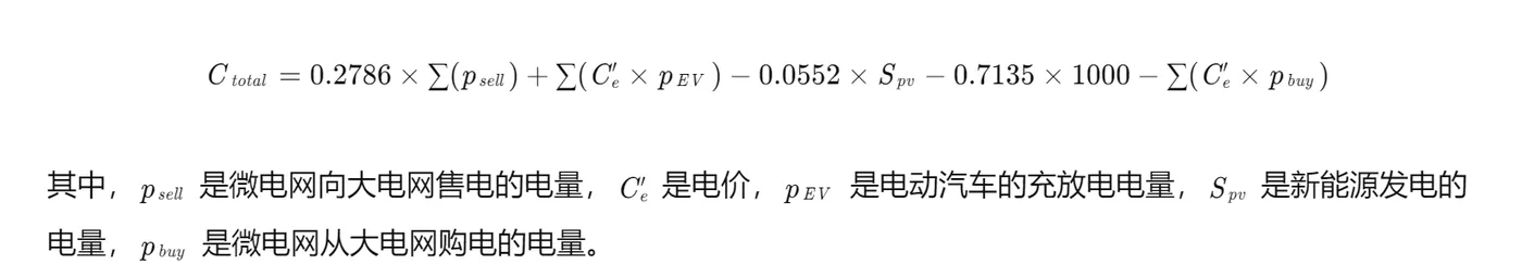 C_total=0.2786*sum(p_sell)+sum(Ce'.*p_EV)-0.0552*S_pv-0.7135*1000-sum(Ce'.*p_buy);