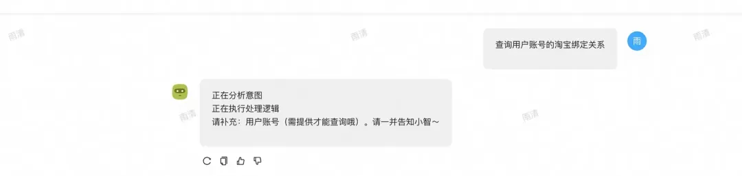 曾经有个query让我们调试到崩溃:“测试用户账号14453427870,解除淘宝关系再换绑到新账号2219675358229 预发环境”。这是一个需要两个步骤才能达成的指令,有30%以上概率无法正确完成。