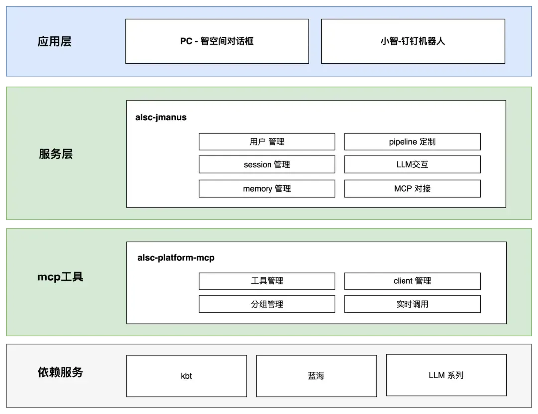 - 在应用层,我们设计了智造对话框(PC页)和小智(钉钉机器人):