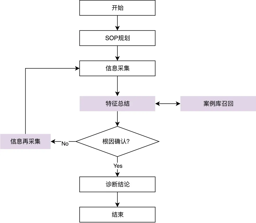 对于高频、高确定性的运维场景(如“CPU使用率突增至95%”“实例存储空间不足”“SQL执行花了10多秒”),我们采用“执行型Agent”。该Agent除了具备上述对抗幻觉的设计外,任务规划是严格遵循标准化诊断流程(SOP),大模型的角色被限定为: