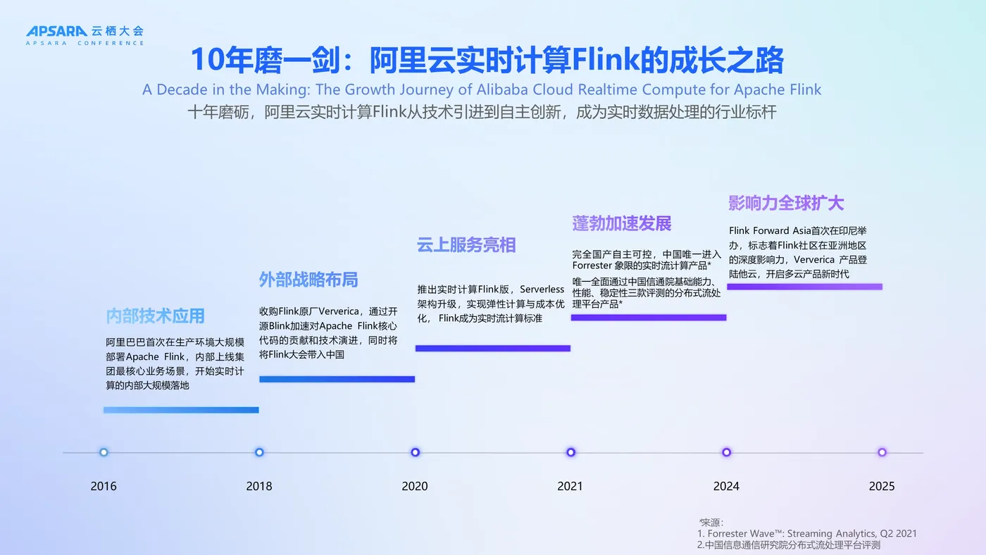 在数据驱动的时代,实时数据处理已成为企业数字化转型的核心能力。阿里云实时计算 Flink 版用了十年时间来进行产品发展,从技术引进到自主创新,已成为实时数据处理的行业标杆。在这次云栖大会上,阿里云发布了实时计算 Flink 的全新升级,不仅在计算和存储层面实现重大突破,更在 AI 时代开辟了实时智能的新篇章。