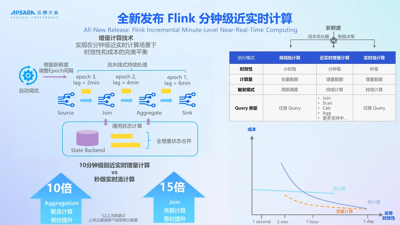 传统的流计算和批计算各有优劣。流计算能够提供秒级时效性,但成本较高;批计算成本较低,但时效性差,通常是小时级或天级。用户在精细化场景下,需要在时效性和成本之间找到完美平衡。阿里云实时计算 Flink 版推出的增量计算技术,正是为了解决这一痛点。