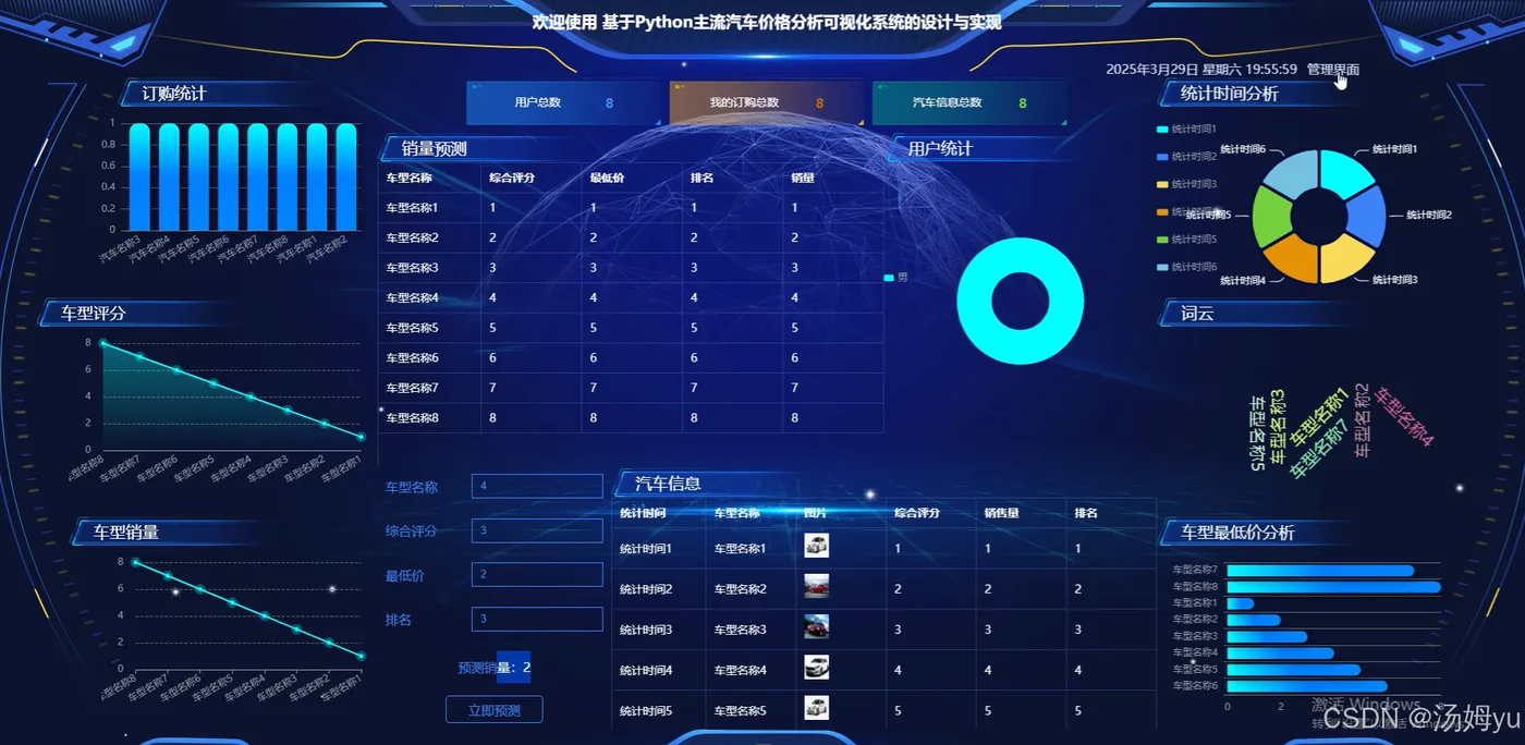 随着经济的快速发展和人们生活水平的不断提高,汽车已经成为许多家庭的必备交通工具。汽车市场的规模不断扩大,品牌和车型也日益丰富多样。面对众多的汽车品牌和复杂的市场信息,消费者在购车时往往面临诸多困惑。汽车价格受到多种因素的影响,如品牌、配置、市场供需等,价格波动频繁且难以捉摸;消费者在购车前需要花费大量时间和精力去收集和比较不同车型的价格、性能、配置等信息,增加了购车的难度和成本。汽车经销商和制造商也需要及时了解市场动态,以便调整销售策略和生产计划。开发一个能够对主流汽车价格进行分析和可视化的系统显得尤为重要。通过整合和分析海量的汽车价格数据,为消费者提供直观、准确的价格信息和购车建议,为汽车行业的从业者提供市场趋势分析和决策支持,是当前汽车市场信息化发展的必然需求。