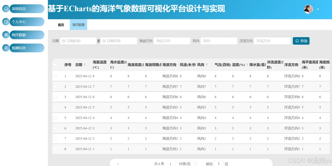 (3)提升技术应用:通过基于ECharts的可视化平台,能够推动数据可视化技术在海洋气象领域的应用,为相关技术的进一步发展和普及提供支持。