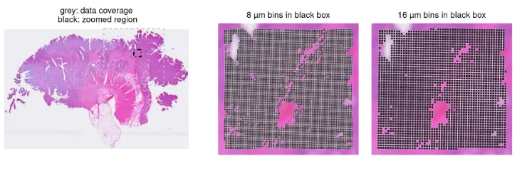 自 2024 年起商业化,Visium HD 将该平台的分辨率从 55 µm 点推进到亚细胞分辨率(2 µm)的 bins。