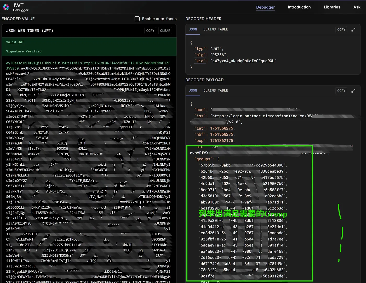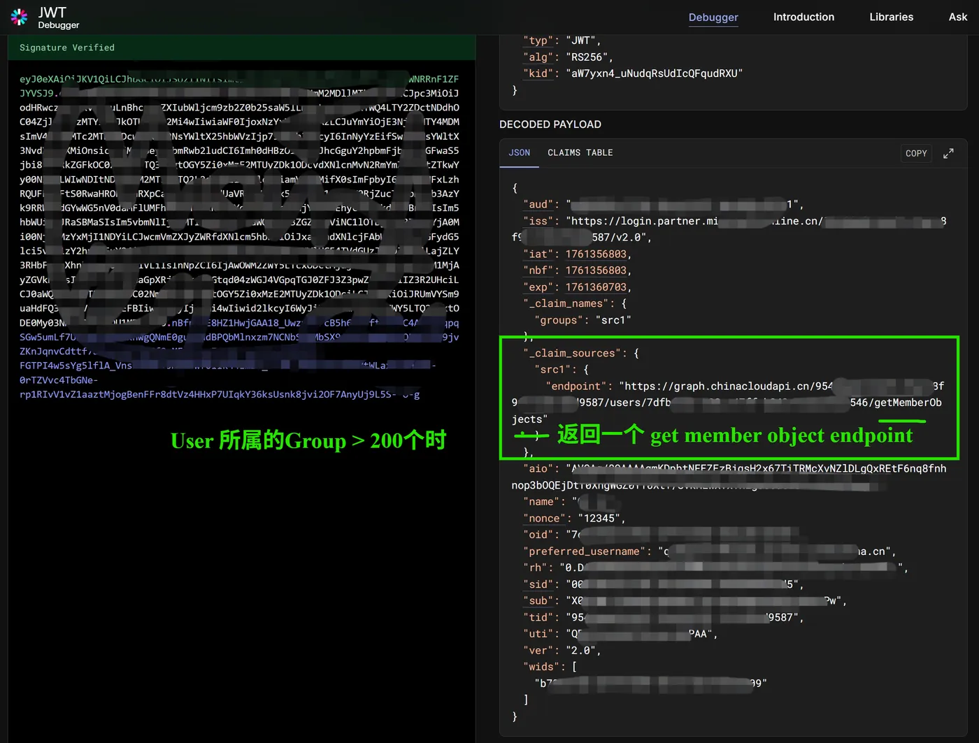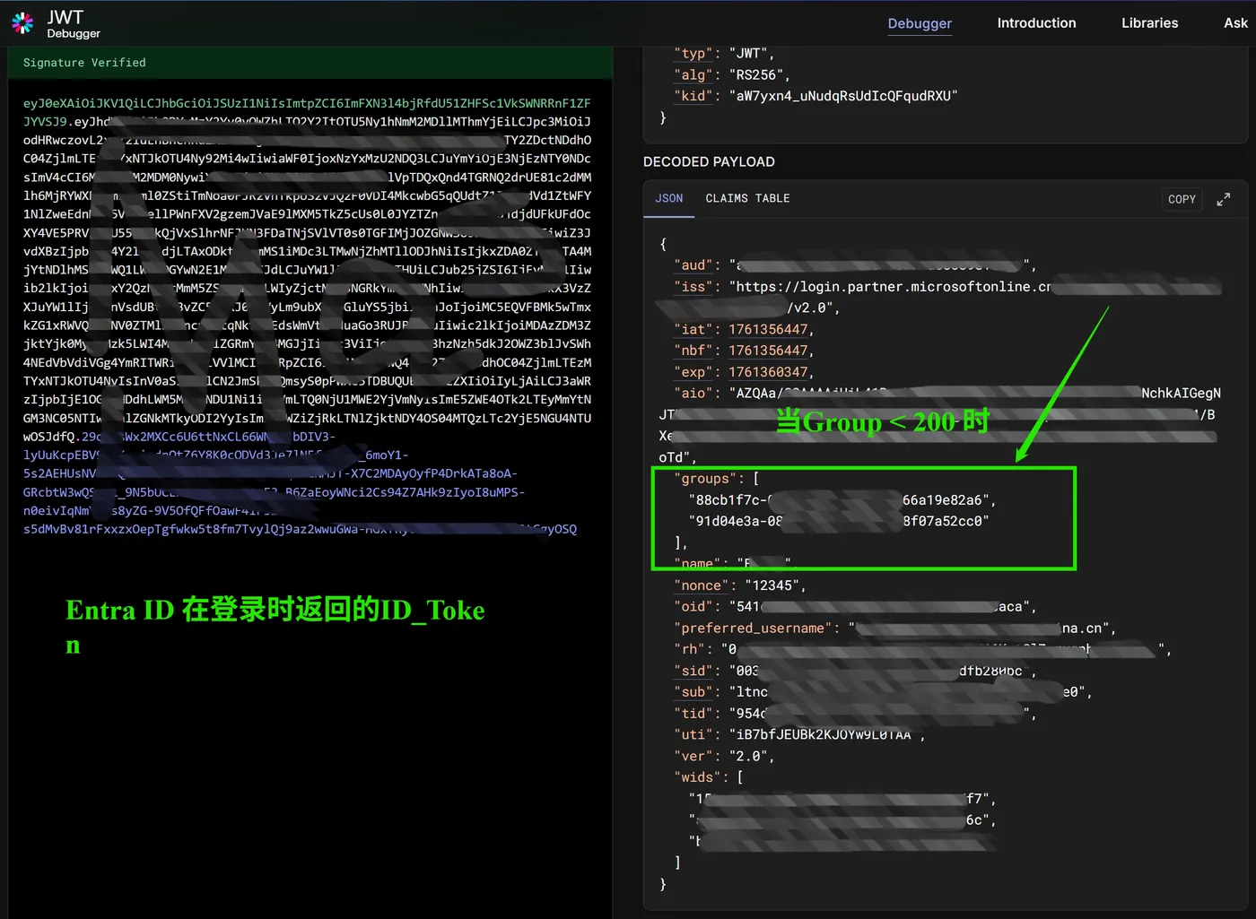 使用Azure Entra ID进行用户的登录授权管理,但是当这个用户所属的组(Group)超过200个之后,在ID Token中就无法全部包含,而是返回一个endpoint,需要再次通过这个Endpoint来获取完整的Group List。