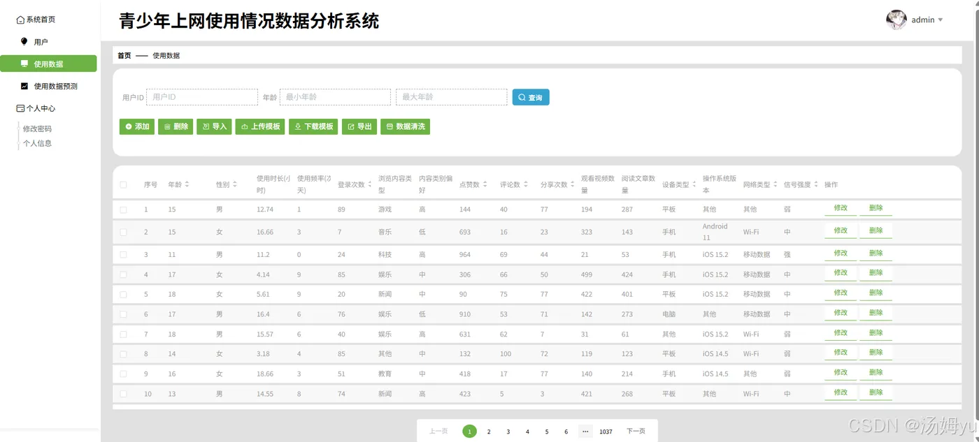 本研究丰富了青少年网络行为研究的理论维度。传统研究多依赖问卷调查、访谈等定性方法,存在样本量小、主观性强等局限。而基于Python大数据的分析,可整合多平台、长周期的用户行为数据,揭示青少年网络使用的深层规律,如不同年龄段、性别、地域群体的行为差异,以及网络使用与学业成绩、心理健康的关联机制,为构建更科学的青少年网络行为理论模型提供数据支撑。同时,结合机器学习算法的预测功能,可探索网络使用行为的动态演变规律,为行为预测理论的发展注入新活力。