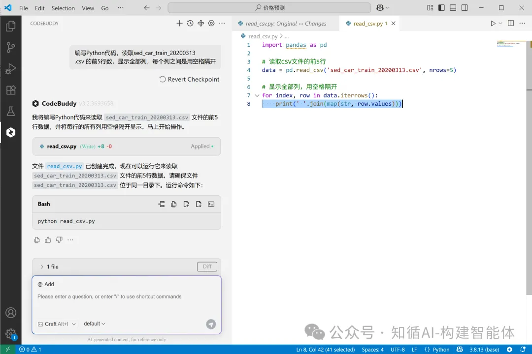 - 以上的错误提示No module named 'pandas',如果是在Cursor中可以直接在错误段落点击"Add to Chat",发送简单指令就可以精准快速的处理: