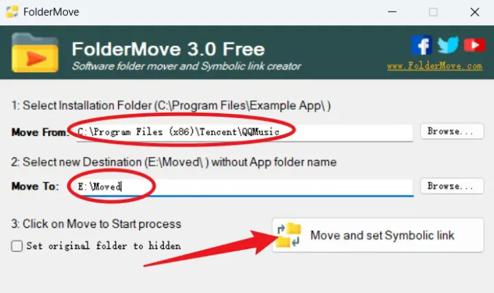比如我的QQ音乐安装在C盘,然后将C盘中的QQMusic文件夹移动到E盘Moved文件夹。