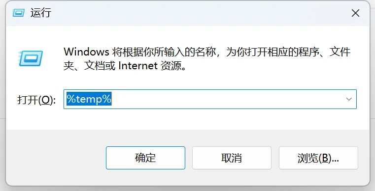 - 按 Win + R 打开“运行”窗口,输入 %temp% 并回车,直接定位到临时文件目录(C:\Users\你的用户名\AppData\Local\Temp)。