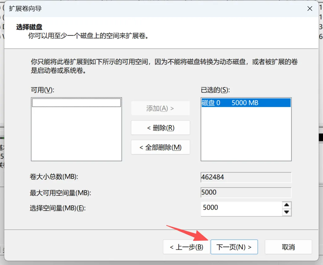 5、因为是全部全并过来,所以选择空间量,填的是全部量,然后继续点下一步;