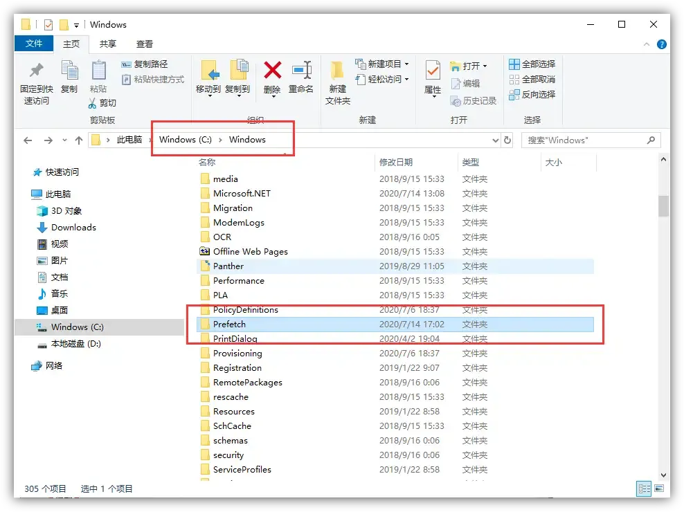 操作步骤:打开C盘,点击【Windows】→【prefetch】,进入后把里面的内容删除就行了。