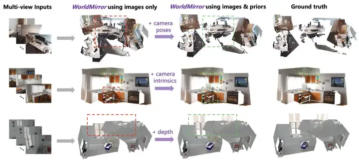 传统3D重建方法只能处理原始图像,无法利用现实应用中常见的额外信息。混元世界模型1.1突破性地提出多模态先验引导机制,支持灵活注入: