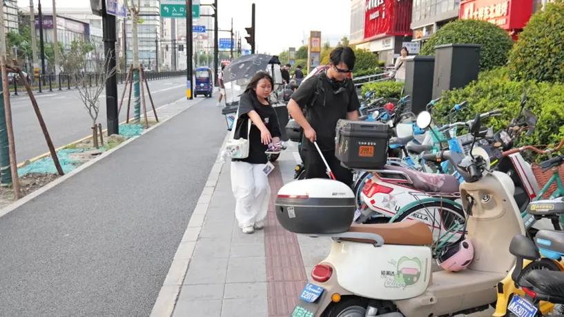 - 有大叔默默挪开占用盲道的电瓶车